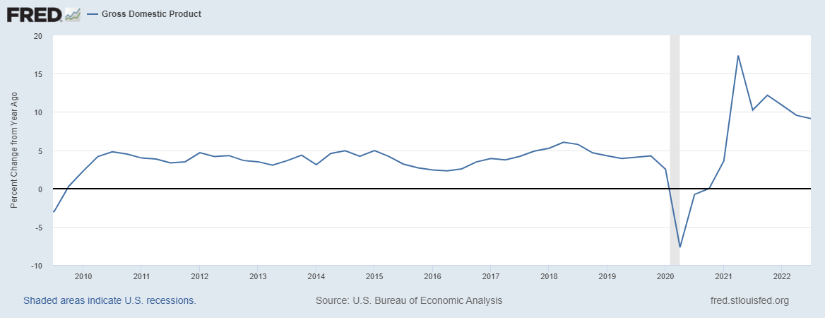 GDP성장률을 보면 1990년대 10년동안 성장률은 꾸준했다. 2000년대는 더 단순했다. 침체에서 빠져나와 상승했다가 2008년 금융위기 전까지 하락했다. 이렇게 된 이유는 아마도 FED의 권한이 강화된 영향이 컸던 것 같다.